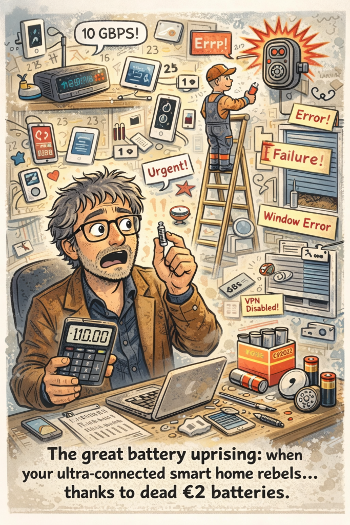 When your ultra-connected smart home runs at 10 Gbps, you expect cutting-edge problems. What you don’t expect is a full-scale rebellion… from two-euro batteries. This week: alarms failing, shutters dying, technicians queuing — and a quiet realization that the weakest link in modern tech isn’t the network, but the tiny things we forget to check. Click to witness the great battery uprising.