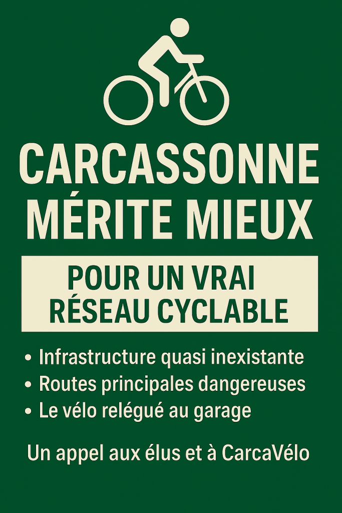 🚴♀️ Carcassonne sans pistes cyclables, c’est un frein à la liberté. Après 25 ans à Hanovre, je témoigne : notre ville peut et doit offrir un réseau sûr et ambitieux. Découvrez mon appel aux élus et à CarcaVélo…